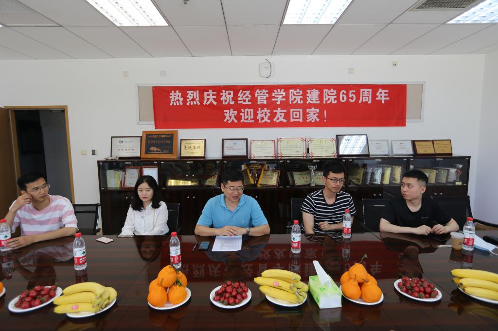 经管学院研究生指导主任单伟首先代表经管学院全体师生向校友们的到来表示热烈欢迎。他表示,今年是经管学院成立六十五周年,作为院庆系列活动之一,欢迎校友们返校座谈交流。校友是母校的重要资源,学院会更加重视校友工作。希望校友们与母校共成长,期待在未来与母校加强产学研等方面的合作。