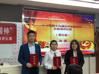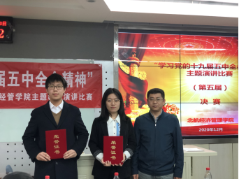 2020年12月30日下午,经济管理学院在新主楼A618举行“学习党的十九届五中全会精神”主题演讲比赛决赛。学生工作办公室主任衣萌主持本次比赛。