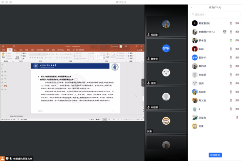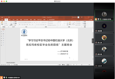 2020年7月12日上午10点,经济管理学院研究生ZY18081班在腾讯会议开展线上主题班会,学习“习近平总书记给中国石油大学(北京)克拉玛依校区毕业生的回信”。此次会议的参与人员有班级同学12人,辅导员孙铭顺。