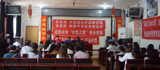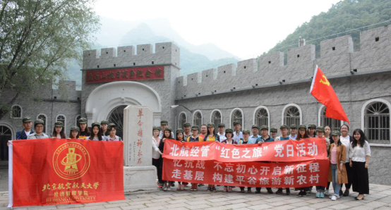 为进一步学习贯彻习近平新时代中国特色社会主义思想,重温我党艰苦创业历程,学习感悟前辈奋斗事迹,传承革命精神,经济管理学院教工八0三党支部、SY1708第二党支部和ZY1708第一党支部于2018年5月12日共同开展“忆抗战 不忘初心开启新征程,走基层 构建平谷旅游新农村——红色之旅”主题党日活动。党支部成员及积极分子积极参加,在党支部书记的带领下来到平谷区,与平谷区山东庄镇鱼子山村党总支进行支部共建,并参观了鱼子山抗日战争纪念馆。