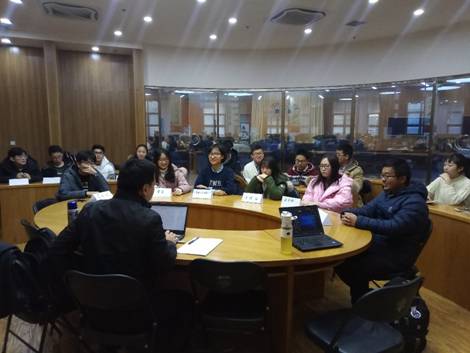 王喜忠副书记首先对本次座谈会的流程和内容进行介绍。随后,王书记与同学们就经管学院的学生特点、梦拓计划与学生会工作开展情况及存在的问题、学术沙龙开展情况等方面进行了深入思考、积极讨论。