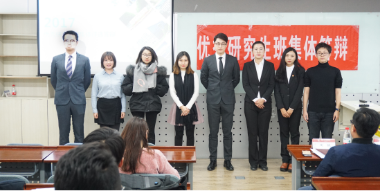 2017年12月11日,北航优秀研究生班集体答辩——第三组在新主楼A座618顺利举行。此次答辩由北航经管学院主办,出席答辩的评委老师共7位,分别为经管学院研究生指导主任单伟老师,人文学院党委副书记张弛老师,外语学院党委副书记王扬老师,新媒体学院党总支副书记董萍萍老师,法学院学生工作办公室主任王江老师,高研院研究生工作负责人王佳发老师以及马克思主义学院研究生工作负责人陈萌老师。经管学院学生工作办公室主任衣萌老师也出席了本次活动。