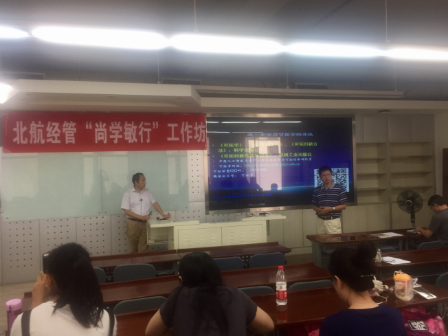 2017年6月26日上午,由经济管理学院“尚学敏行”工作坊主办的系列学术讲座——《可拓学与智能知识管理》于新主楼A618成功举办。特邀请到浙江大学宁波理工学院计算机与数据工程学院副院长李兴森教授为学生们做相关领域的学术报告,出席活动的领导老师还有经济管理学院副院长张人千教授,讲座由郑海涛教授主持。