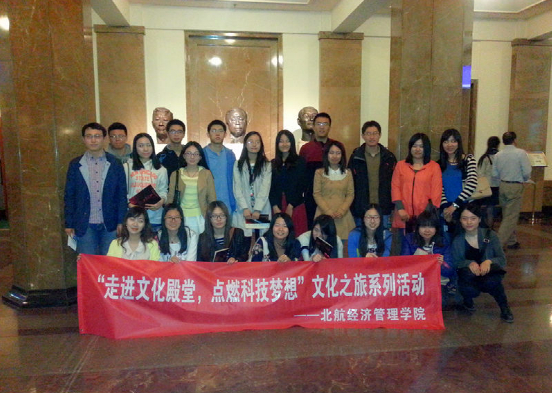 3月份由北航经管学院研究生工作办公室开启了“走进文化殿堂,点亮科技梦想”文化之旅系列活动,颐和园春游活动得到了同学们的一致好评。4月8日由经管学院分研会和SY13081班级共同协办的人艺戏剧博物馆参观活动及观看话剧《天之骄子》活动也成功举办。
