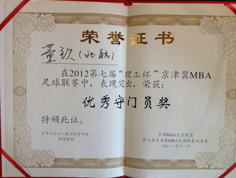 2012年11月25日,第七届“理工杯”京津冀MBA足球联赛,历时一个月终在北京理工大学圆满落下帷幕。北航MBA学生积极参加其中,凭借顽强的拼搏精神和良好球风获得优胜奖及优秀门将荣誉。