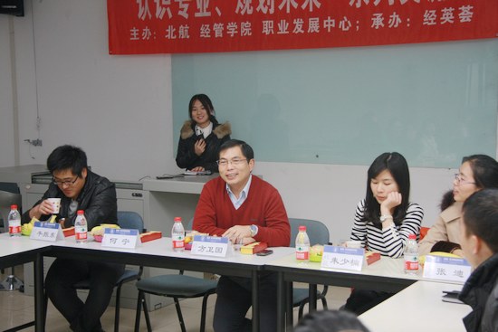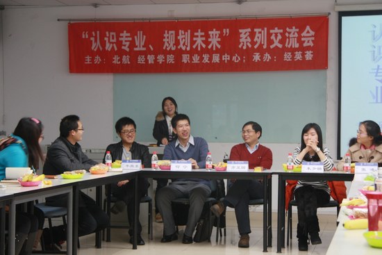 11月5日晚7点,由北航经管学院职业发展中心主办,北航经管学院经英荟、ZY12081班承办的“认识专业,规划未来”系列交流会——专业硕士专场在新主楼A1028举办。到场的嘉宾有北京欧美大片ppt免费大全经济管理学院副院长方卫国教授,优秀校友牛振东、张迪、朱少楠、何宁以及2012级专业硕士。
