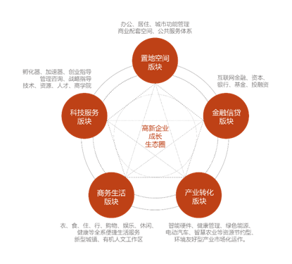 Inno.EcoS高新企业成长生态圈,践行科技引领未来,关怀生活体验的理念,代表丰富、完善、多元化的资源实力和自由、创新、全球化的服务导向。以构建和运营科技服务生态系统为主体,通过整合政府、产业、金融、技术、服务等全方位资源,搭建置地空间、科技服务、金融信贷、产业转化、商务生活五大服务版块,助力企业走向成功。