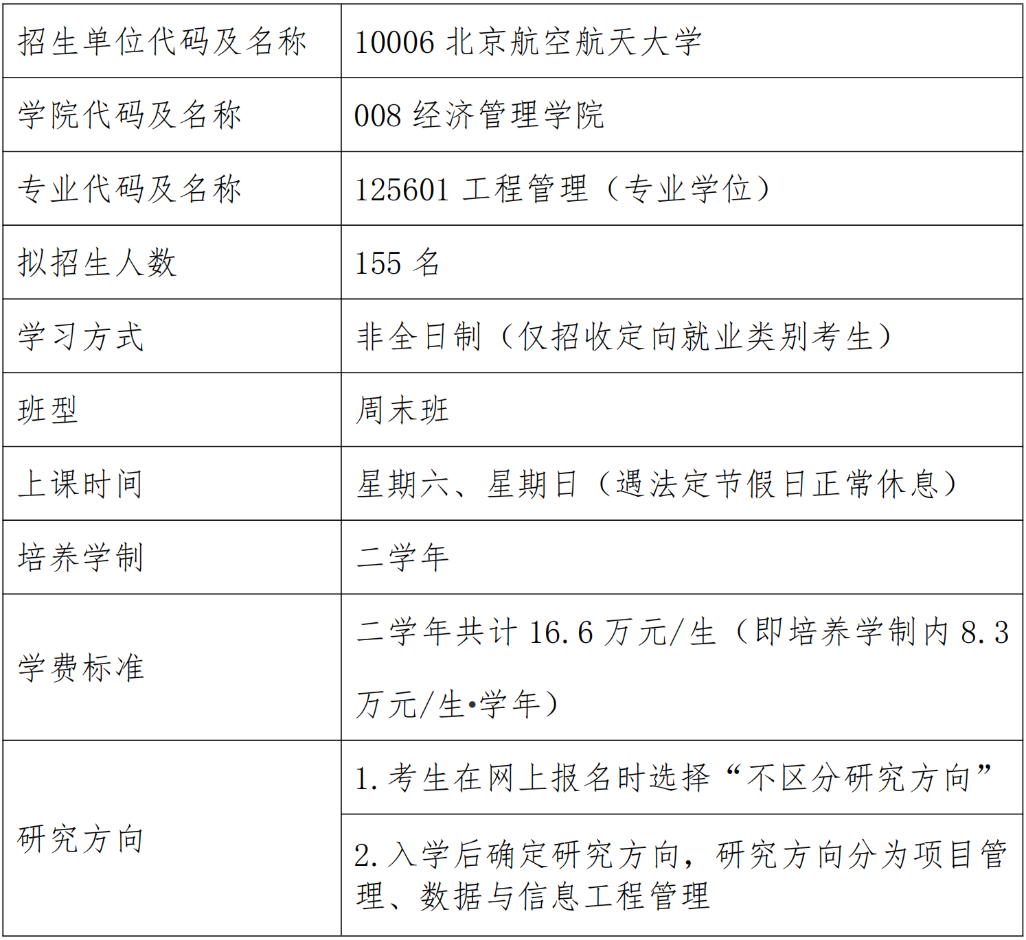 凡是符合北航非全日制工程管理硕士招生简章相应报考要求的考生,请于2022年10月5日以前,仔细阅读教育部、所在省市研招办、所选择的报考点以及北航经济管理学院的公告、通知等文件,并于2022年10月25日前按要求完成报考程序。未按要求报名、误填、错填或填报虚假信息而导致不能确认、考试、录取等,后果由考生本人承担。