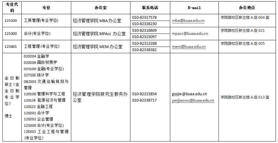 经济管理学院各类型研究生招生办公室联系方式