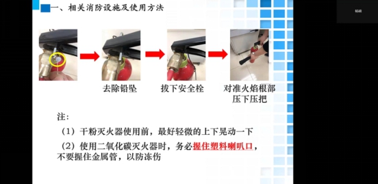 经济管理学院实验中心于2022年3月11日下午组织实验中心有注册机位的同学参加线上消防安全培训(1学时课程),本次培训课由杨硕老师主讲。杨硕老师从火灾的基本常识、相关火灾案例宣讲、实验室内常见的消防隐患、相关消防设施介绍、灭火器使用方法、逃生的相关知识及新主楼逃生路线、如何正确拨打电话报告火警、实验室相关管理制度八个方面进行了细致的讲解,并通过案例讲解和视频演示让大家熟知消防安全各项技能。