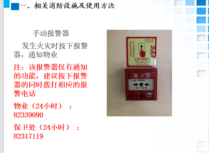 孟老师结合一些真实火灾案例,就实验室及办公室近期检查中常见火灾危险隐患、常用灭火器的种类和使用方法、如何正确报火警、实验室安全准入;以及火灾事故中逃生的方法为大家进行详细讲解。