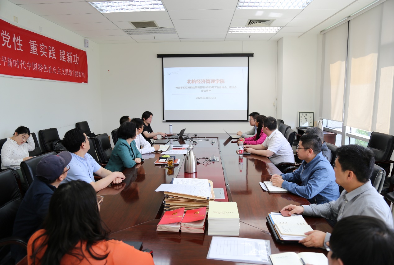 4月30日上午,经济管理学院召开院校两级管理体制改革传达学习及研讨会。学院领导班子、专职组织员、党政办主任、全体教职工党支部书记参会,会议由郑海涛书记主持。